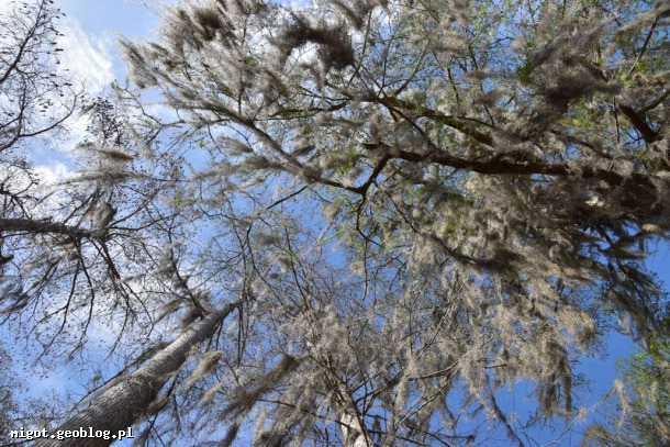 Hiszpański mech na cypryśniach